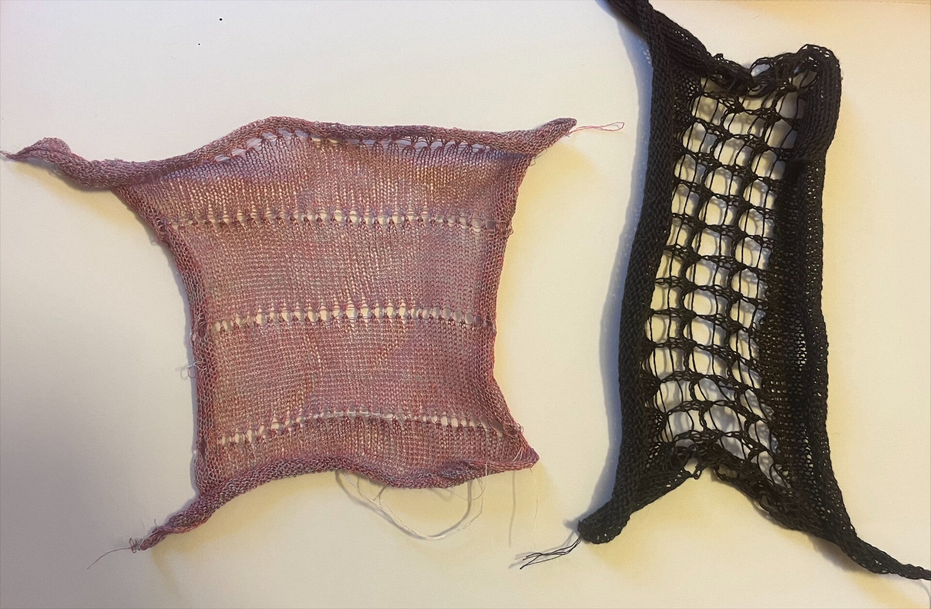These are swatches using latex and a loose tension on a fine gauge knitting machine